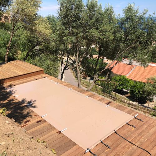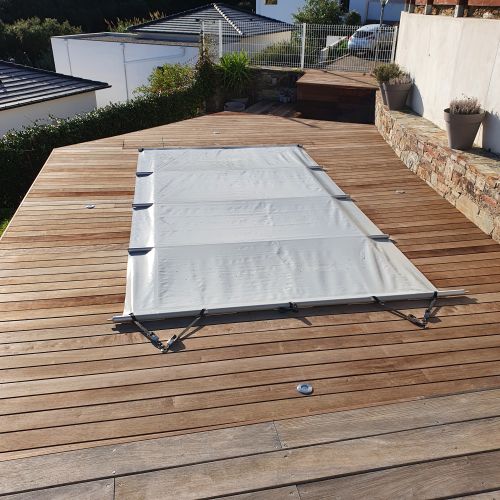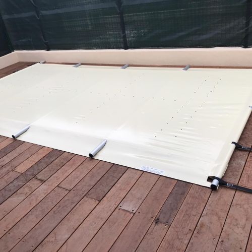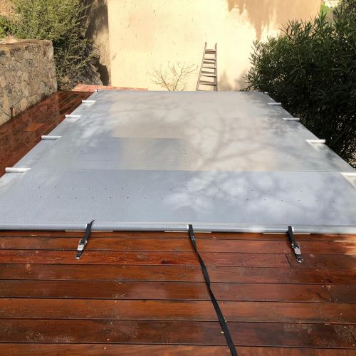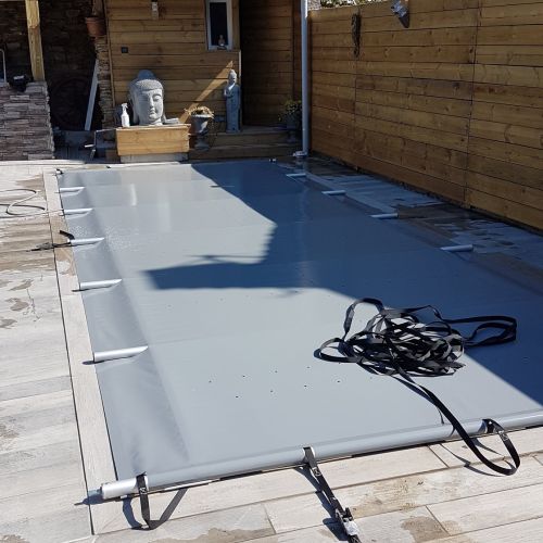 - Son système d’accrochage par sandows individuels permet une tension parfaite une fois en place sur le bassin
